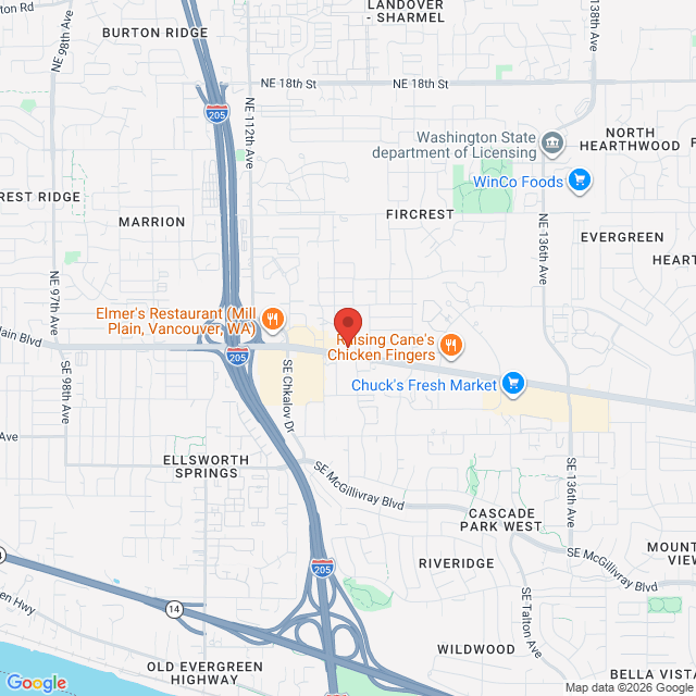 If heading East on Mill Plain turn left at 120th, take next left into Crestwood business center, suite is straight ahead.